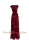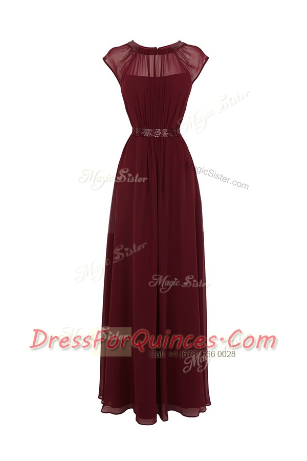 Scoop Burgundy Zipper Beading Cap Sleeves Floor Length