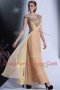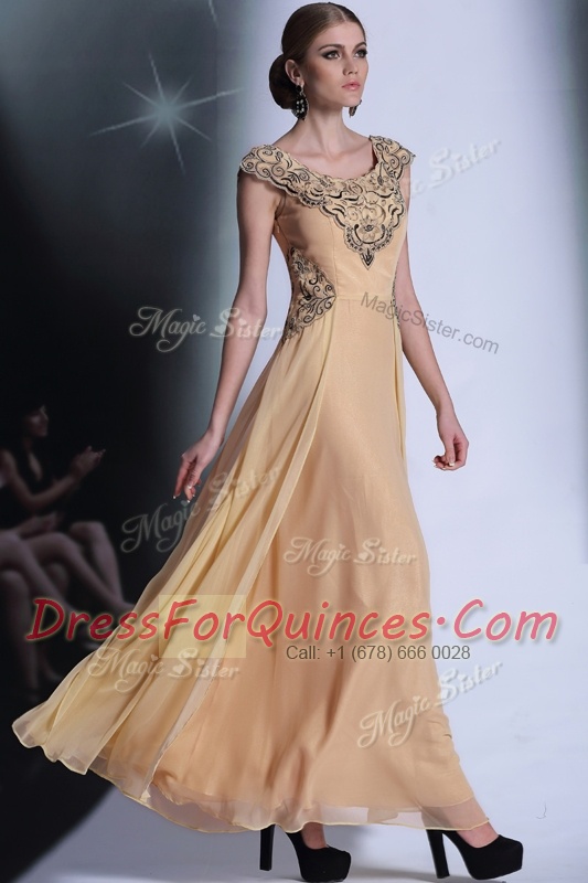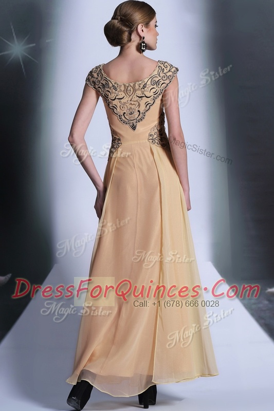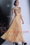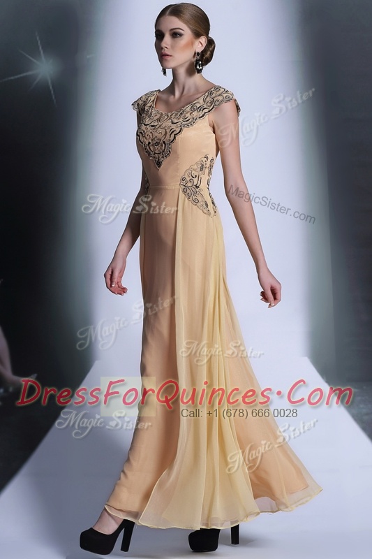Scoop Floor Length Empire Cap Sleeves Peach Prom Gown Side Zipper