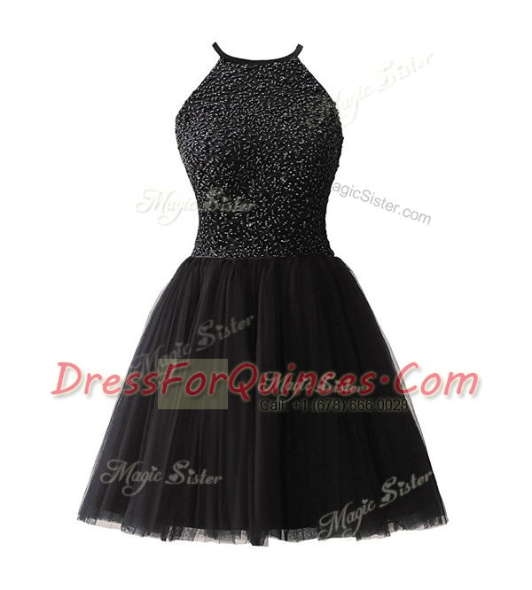 Scoop Knee Length A-line Sleeveless Black Dress for Prom Zipper