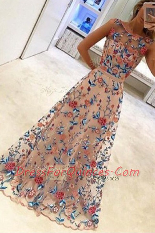 Scoop Multi-color Sleeveless Hand Made Flower Floor Length Dress for Prom