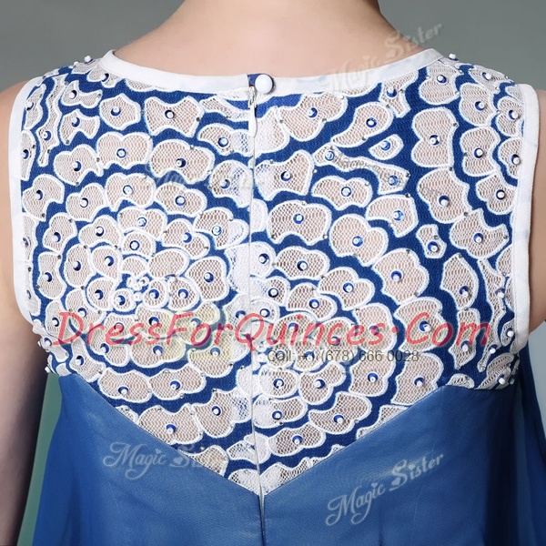 Scoop Navy Blue Sleeveless Floor Length Beading Zipper Prom Dresses