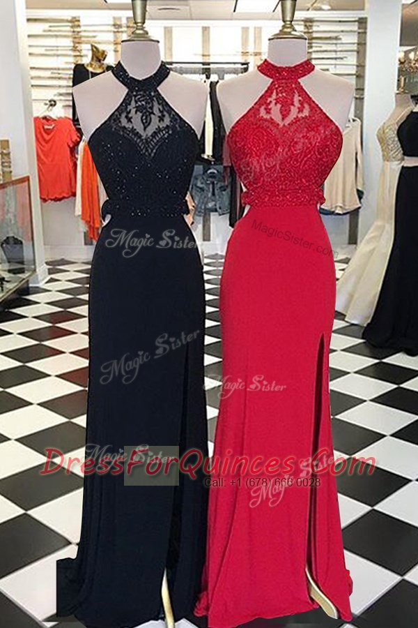 Scoop With Train Column/Sheath Sleeveless Black Prom Gown Sweep Train Backless