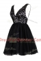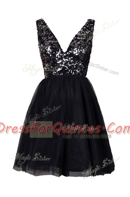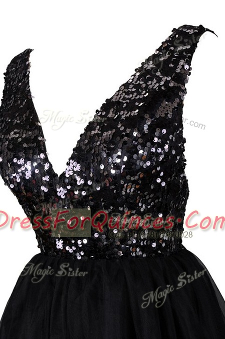 Sequins Prom Party Dress Black Backless Sleeveless Knee Length