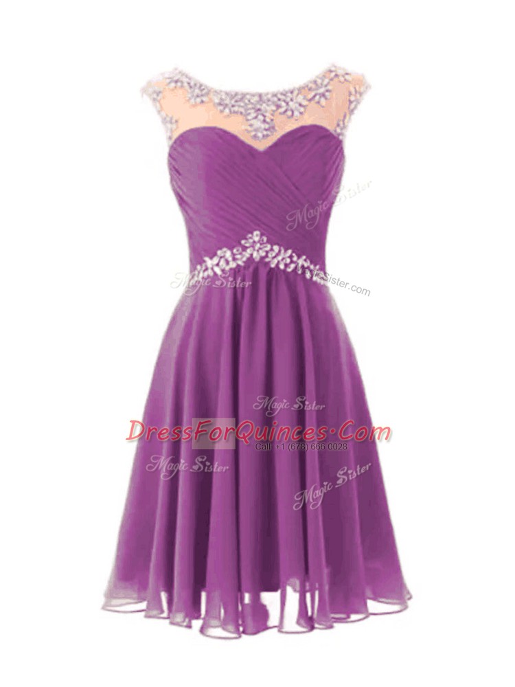 Shining Knee Length A-line Cap Sleeves Purple Evening Dress Zipper
