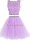 Sleeveless Tulle Mini Length Zipper Homecoming Dress in Lavender with Beading and Lace and Appliques