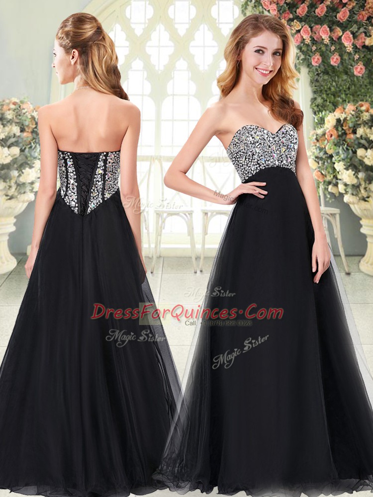 Smart Black Sweetheart Neckline Beading Sleeveless Lace Up
