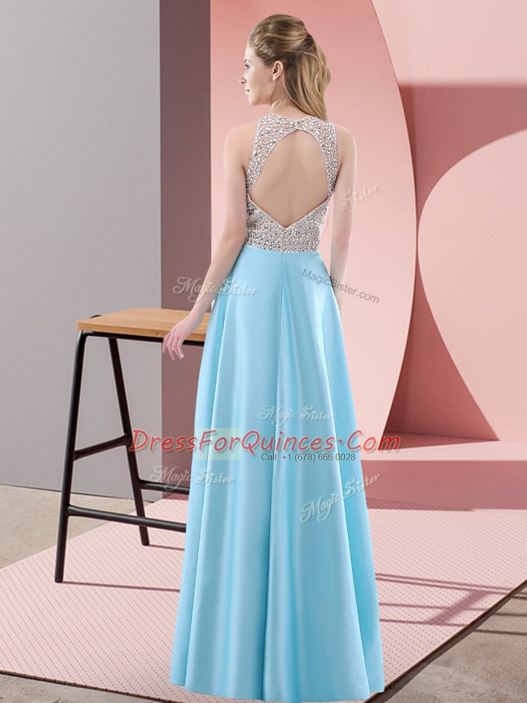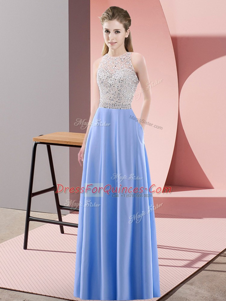 Smart Blue Backless Prom Dresses Beading Sleeveless Floor Length