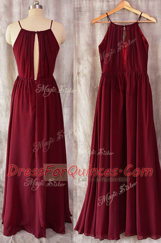 Sophisticated Floor Length A-line Sleeveless Burgundy Zipper
