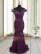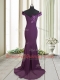 Spectacular Mermaid Off the Shoulder Dark Purple Chiffon Zipper Prom Party Dress Sleeveless Brush Train Beading and Sequins