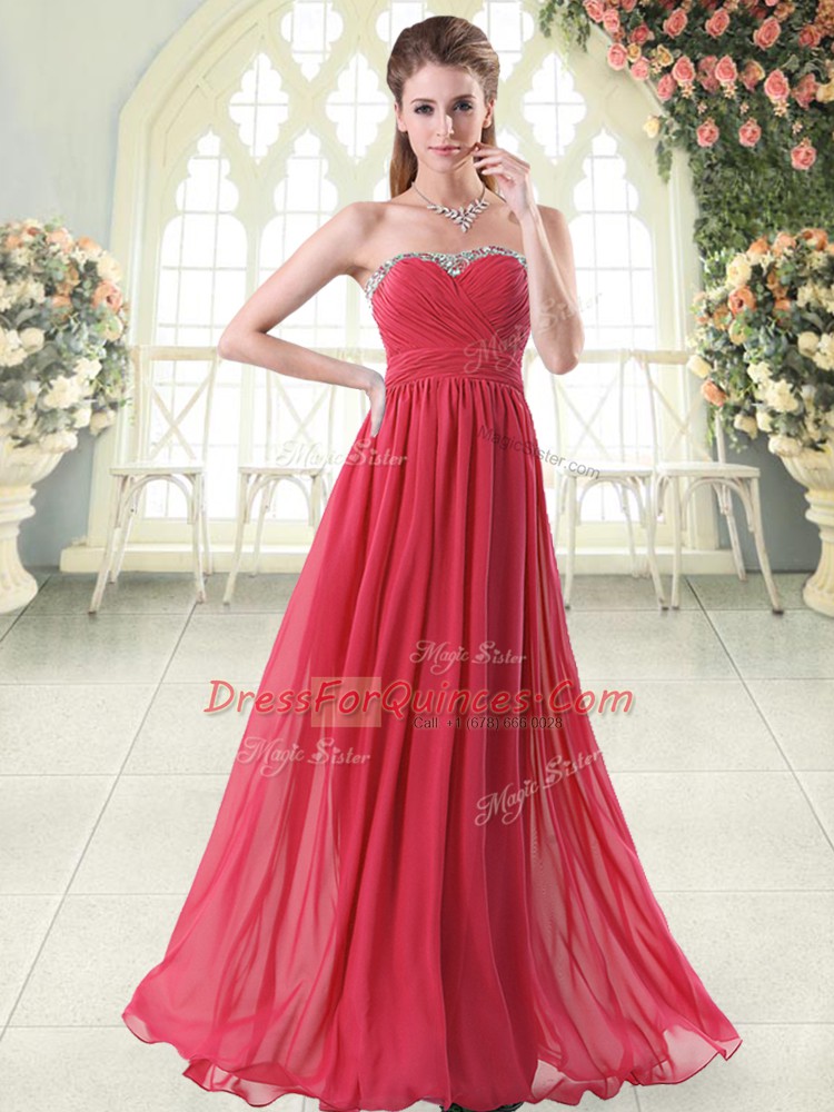 Stunning Beading Prom Dress Red Zipper Sleeveless Floor Length