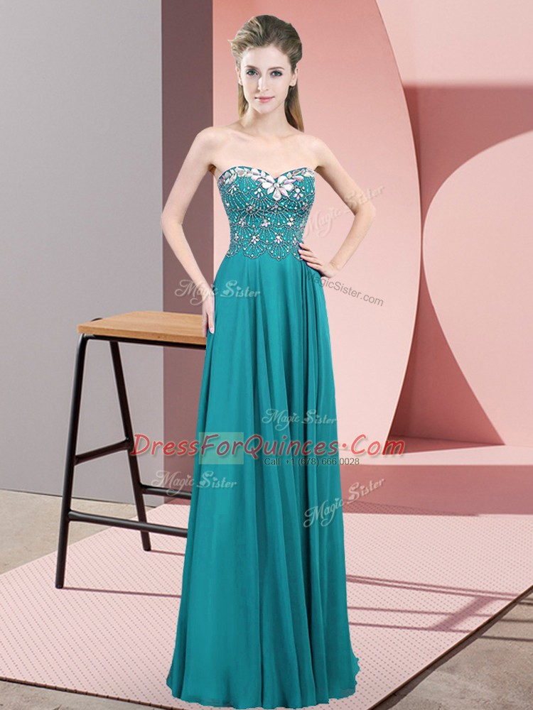 Stylish Sweetheart Sleeveless Floor Length Beading Teal Chiffon