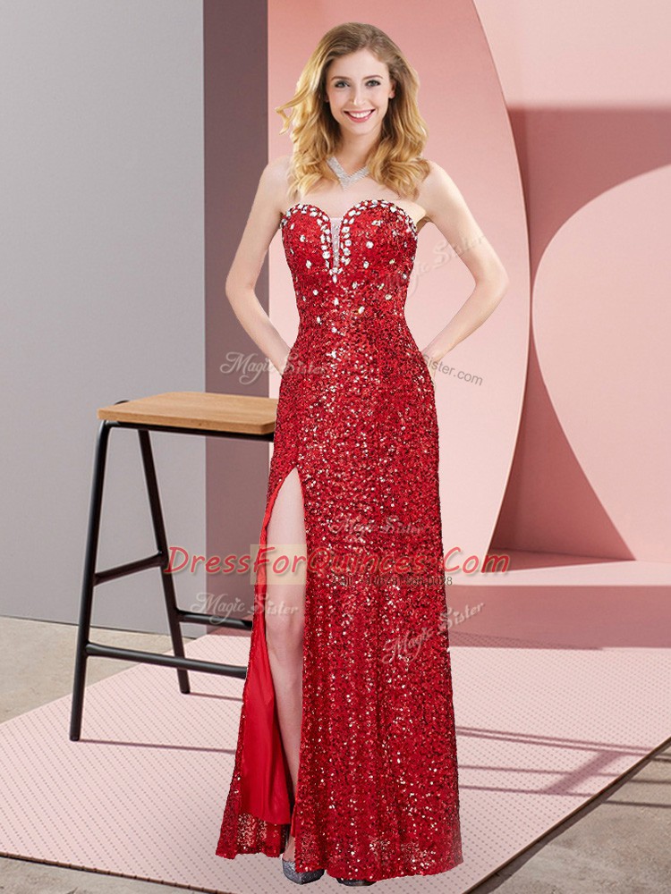 Sumptuous Red Lace Up Sweetheart Beading and Lace Prom Dress Sequined Sleeveless