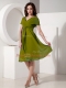 Trendy Olive Green Chiffon Zipper Prom Dresses Short Sleeves Knee Length Ruching