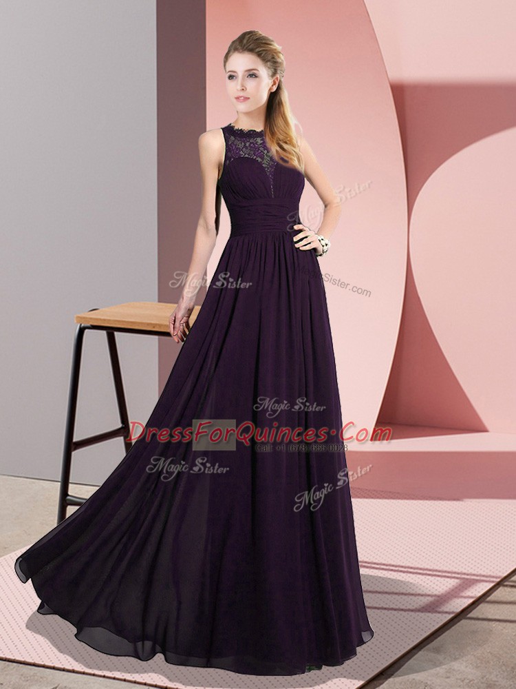 Unique Dark Purple Evening Dress Prom and Party with Lace Scoop Sleeveless Zipper