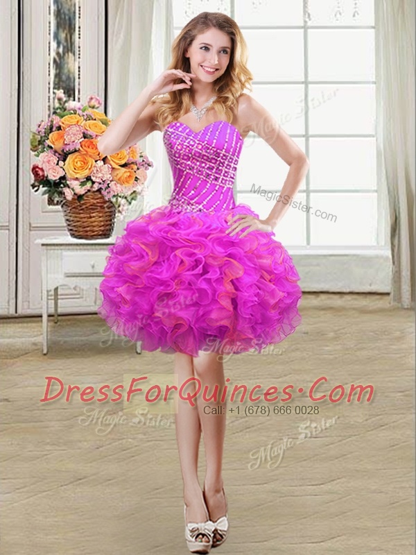 Vintage Beading and Ruffles Prom Gown Multi-color Lace Up Sleeveless Mini Length