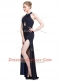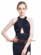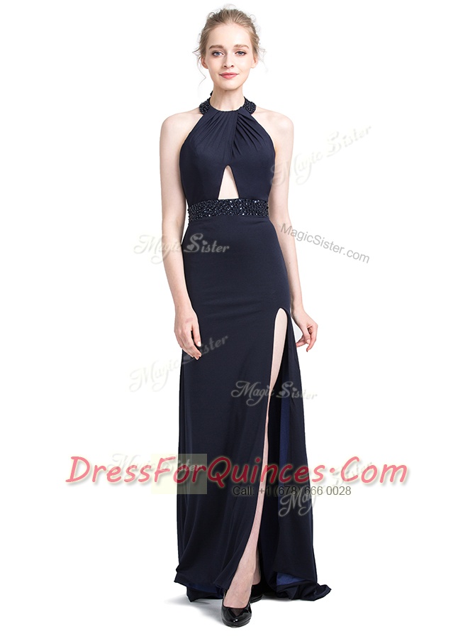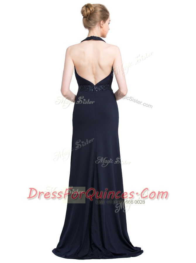Vintage Black Column/Sheath Halter Top Sleeveless Elastic Woven Satin With Brush Train Backless Beading Homecoming Dress