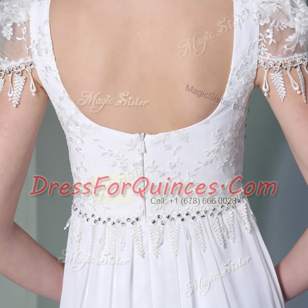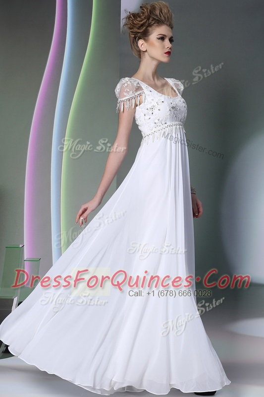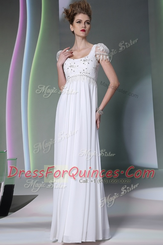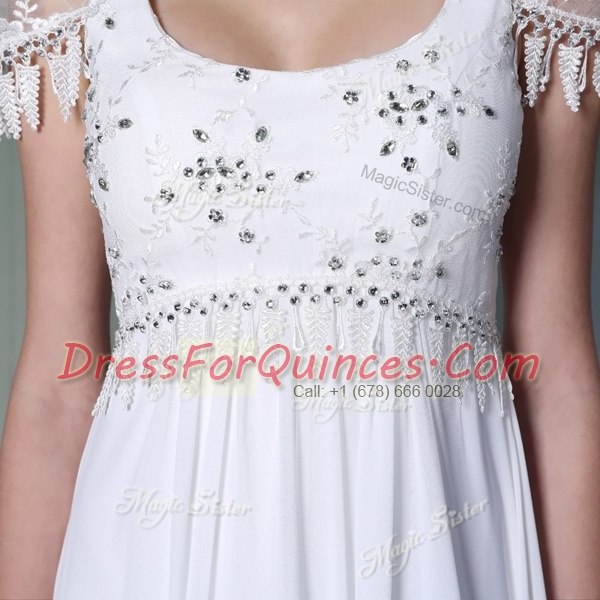 White Scoop Neckline Beading and Lace Prom Evening Gown Sleeveless Zipper