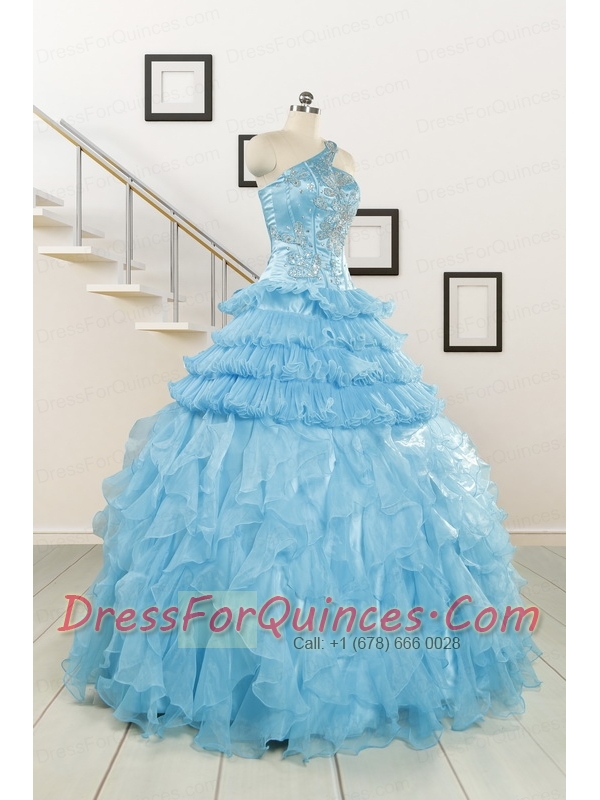 2015 Baby Blue One Shoulder Sweet 15 Dresses with Beading