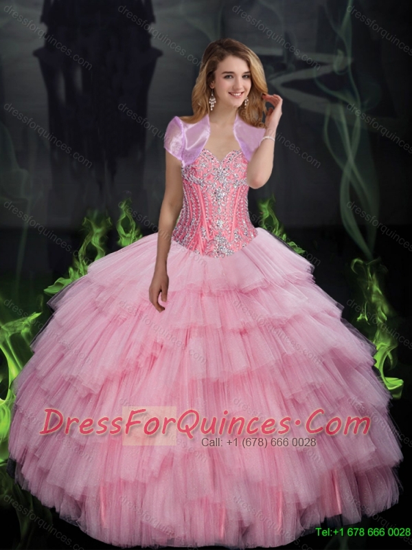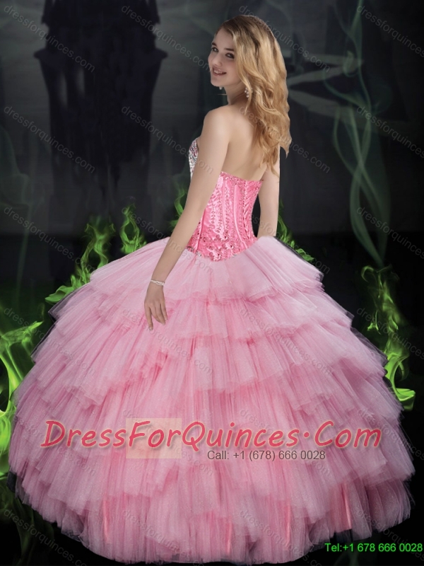 2015 Brand New Ball Gown Custom Made Quinceanera Dresses with Beading in Baby Pink