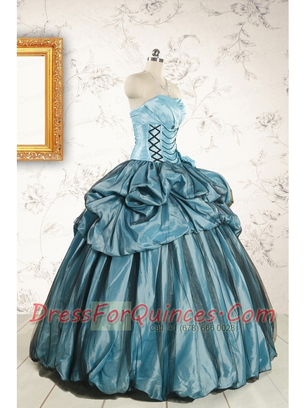 2015 Cheap Strapless Quinceanera Dresses in Teal