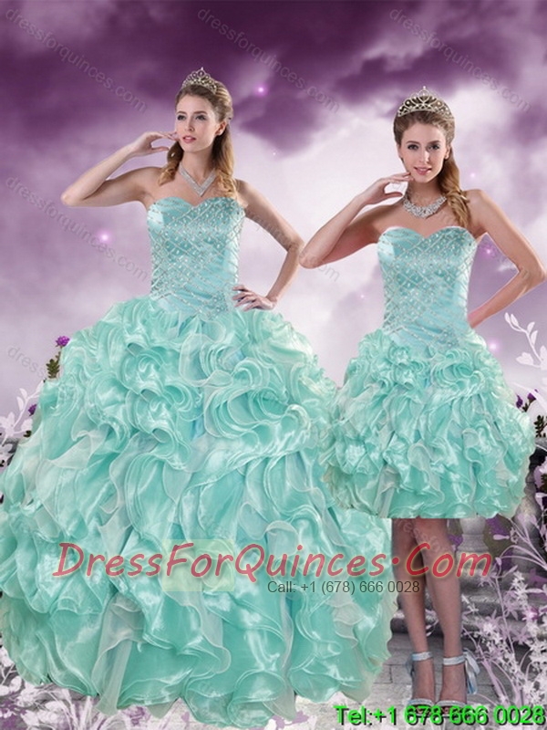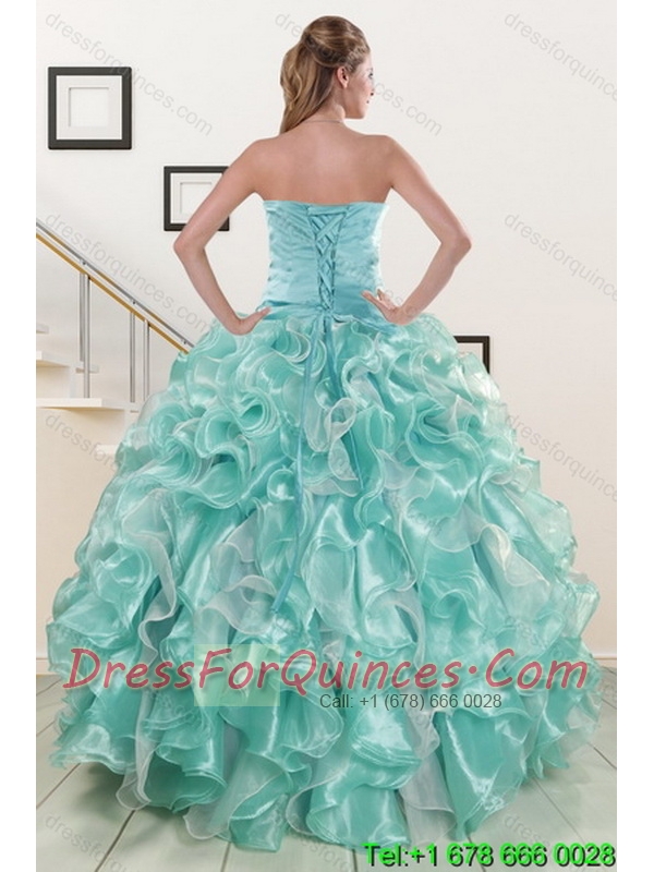 2015 Custom Made Beading and Ruffles Aqual Blue Quince Dresses