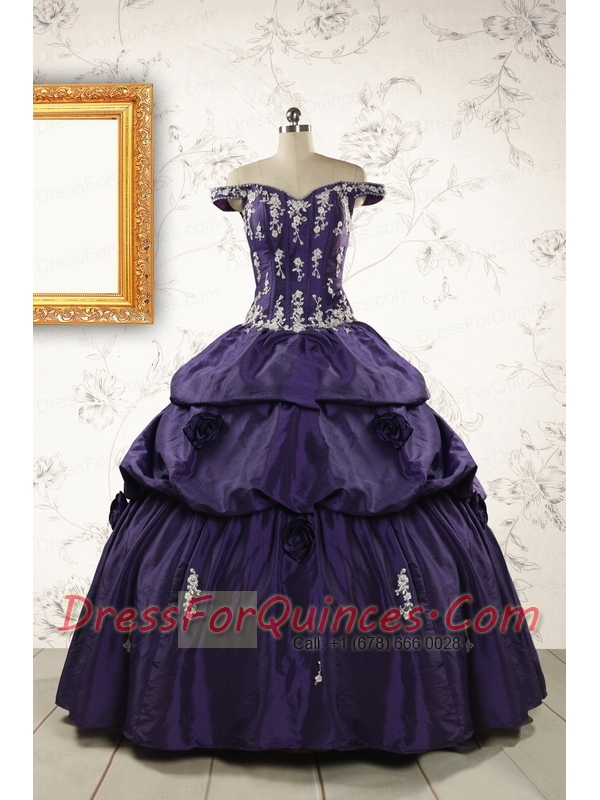 2015 Latest Off The Shoulder Appliques Quinceanera Dresses in Purple