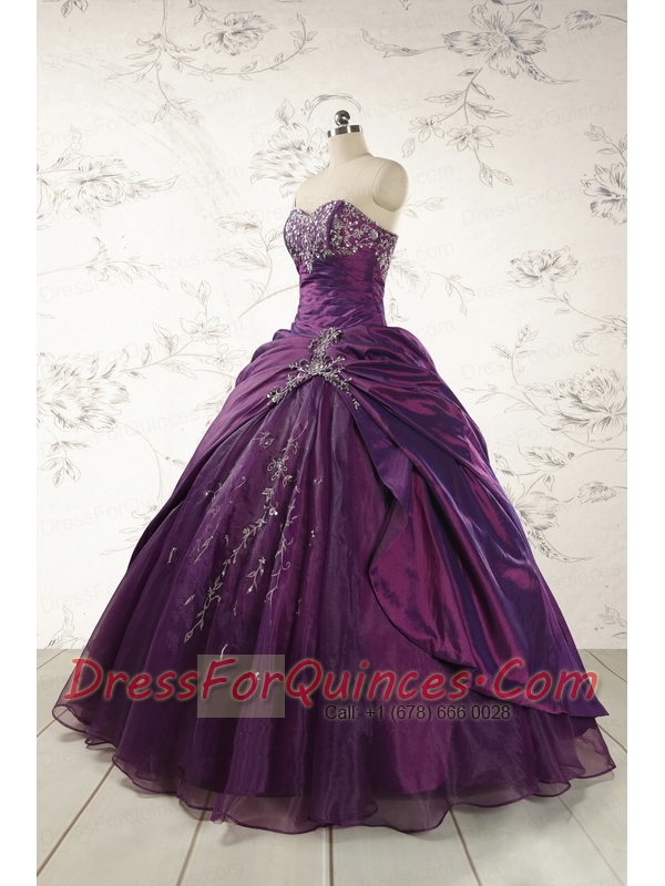 2015 Modern Purple Sweetheart Appliques Quinceanera Dresses