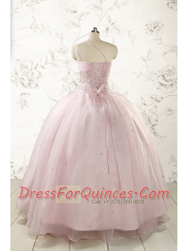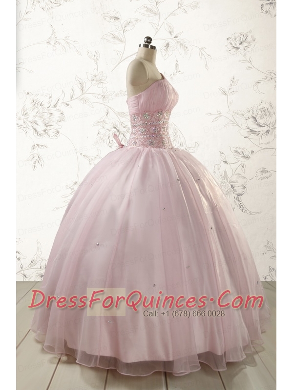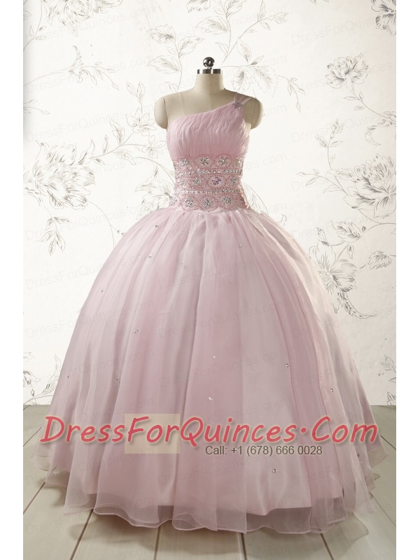 2015 One Shoulder Beading Light Pink Quinceanera Dresses