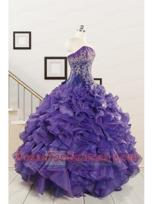 2015 Prefect Purple Sweet 15 Dresses with Embroidery and Ruffles