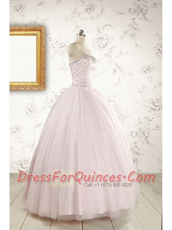 2015 Pretty Beading Light Pink Quinceanera Dresses