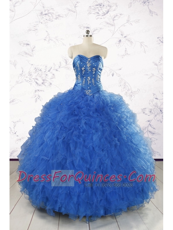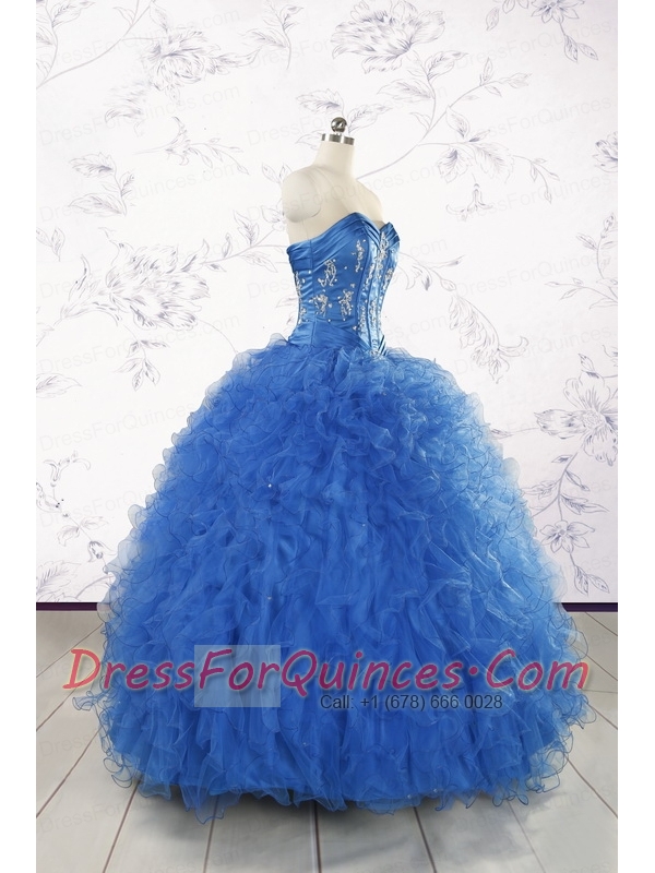 2015 Pretty Royal Blue Quinceanera Dresses with Appliques and Ruffles