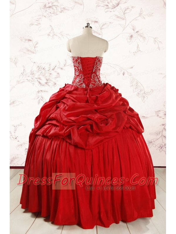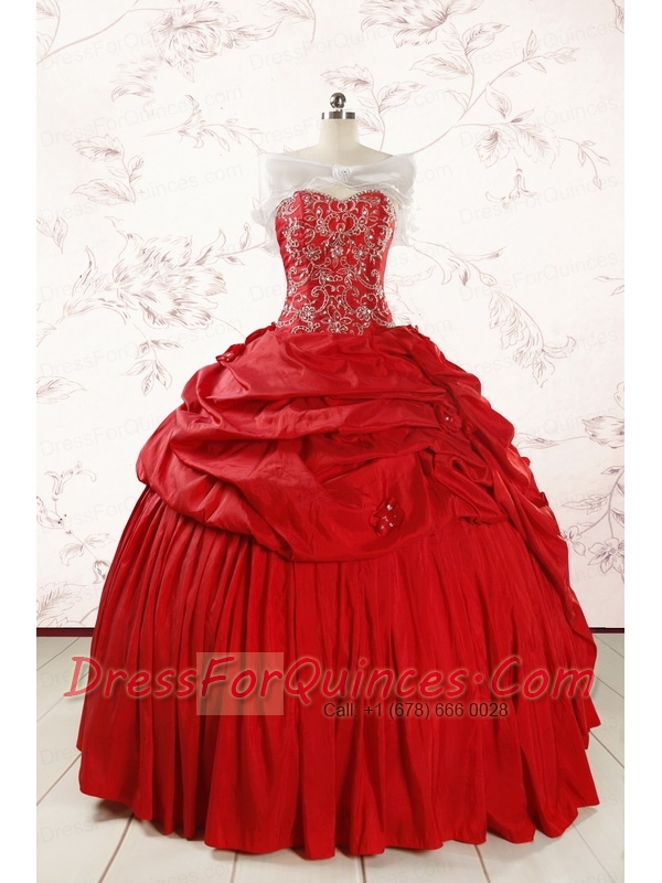 2015 Red Affordable Sweetheart Beading Quinceanera Dresses