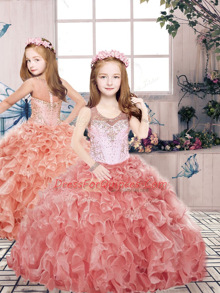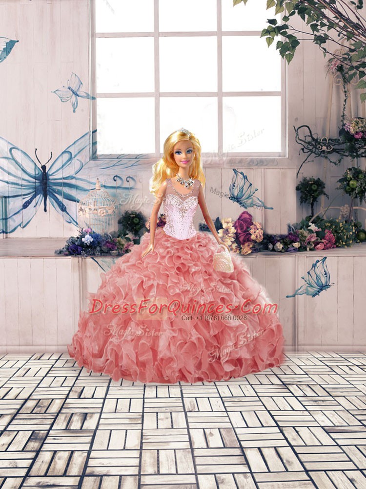 Affordable Scoop Sleeveless Organza Quinceanera Gown Beading and Ruffles Clasp Handle