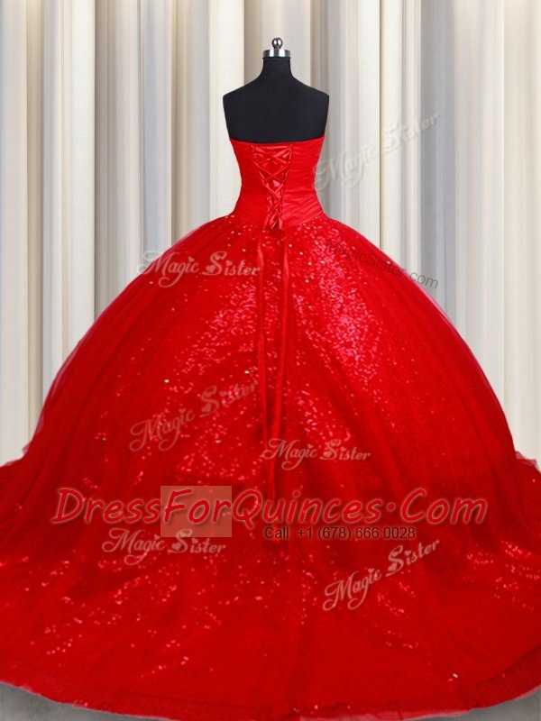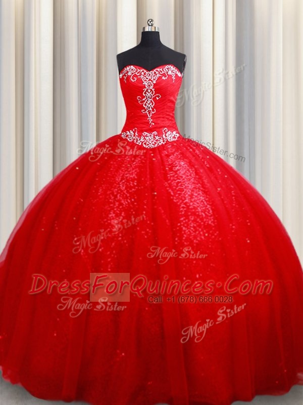 Ball Gowns Vestidos de Quinceanera Red Sweetheart Tulle Sleeveless Lace Up