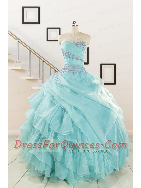 Beading and Ruffles Pretty Quinceanera Dresses in Turquoise for 2015