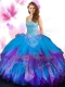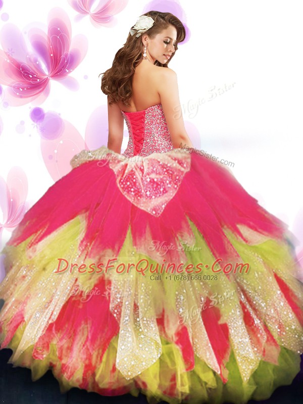 Beauteous Sweetheart Sleeveless Tulle Ball Gown Prom Dress Beading and Ruffled Layers Lace Up