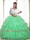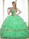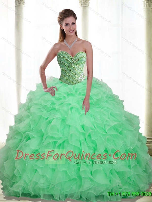 Custom Made Beading and Ruffles Apple Green 2015 Quinceanera Dresses with Sweetheart