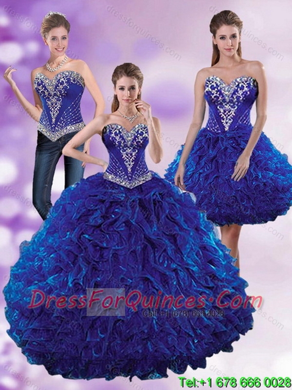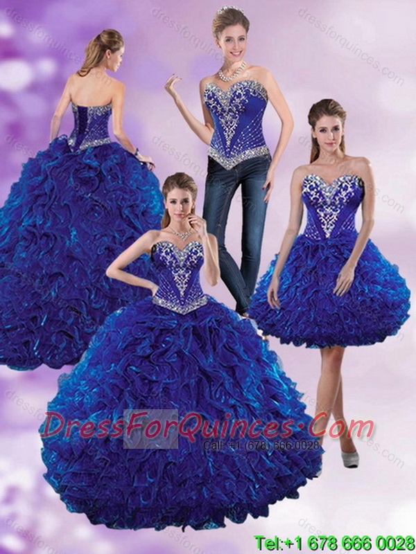 Custom Made Royal Blue 2015 Elegant Quinceanera Dresses with Beading and Ruffles
