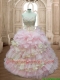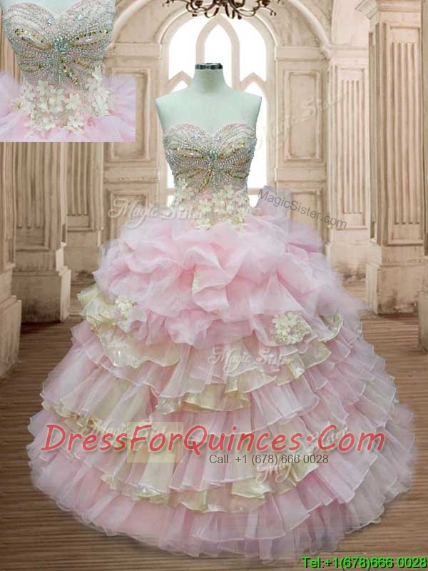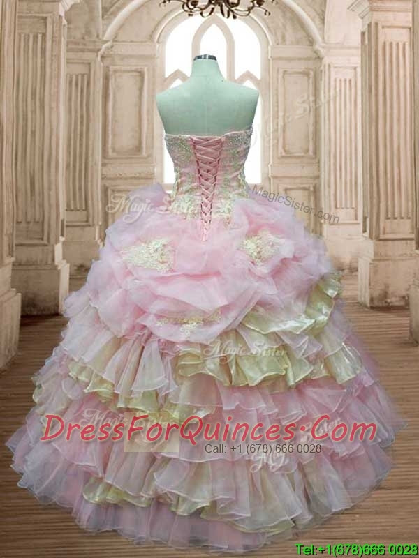 Discount Applique and Ruffled Layers Quinceanera Dress in Baby Pink and Yellow