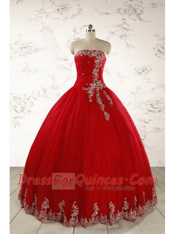 Elegant Red Strapless Quinceanera Dresses for 2015