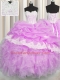 Exquisite Lilac Organza Lace Up Sweetheart Sleeveless Floor Length Quinceanera Gowns Beading and Appliques and Ruffles and Pick Ups