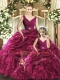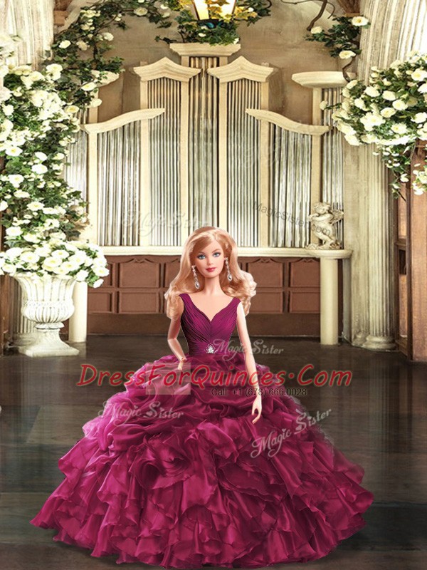 Eye-catching Ball Gowns Ball Gown Prom Dress Burgundy V-neck Organza Sleeveless Floor Length Backless