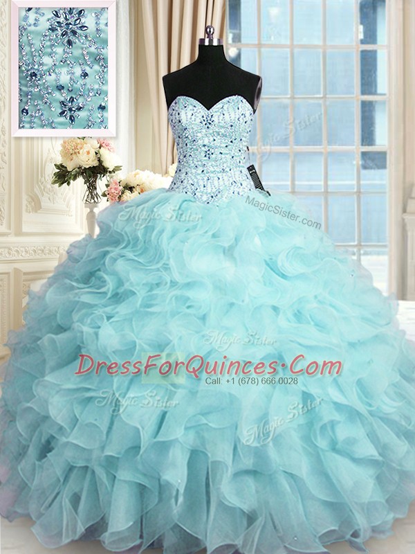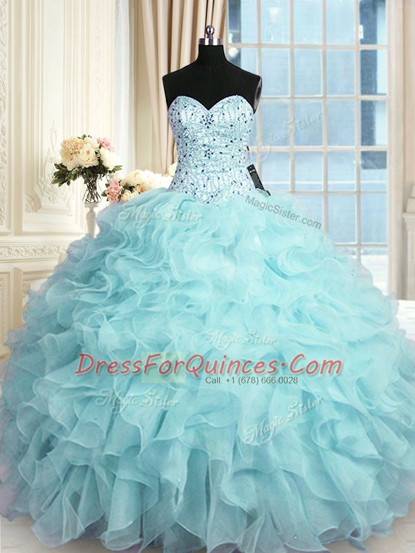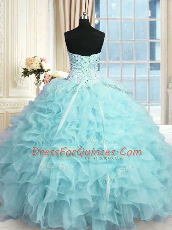Fine Aqua Blue Vestidos de Quinceanera Military Ball and Sweet 16 and Quinceanera and For with Beading and Ruffles Sweetheart Sleeveless Lace Up