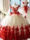 Fitting Red Ball Gowns Hand Made Flower Quinceanera Gown Zipper Tulle Sleeveless