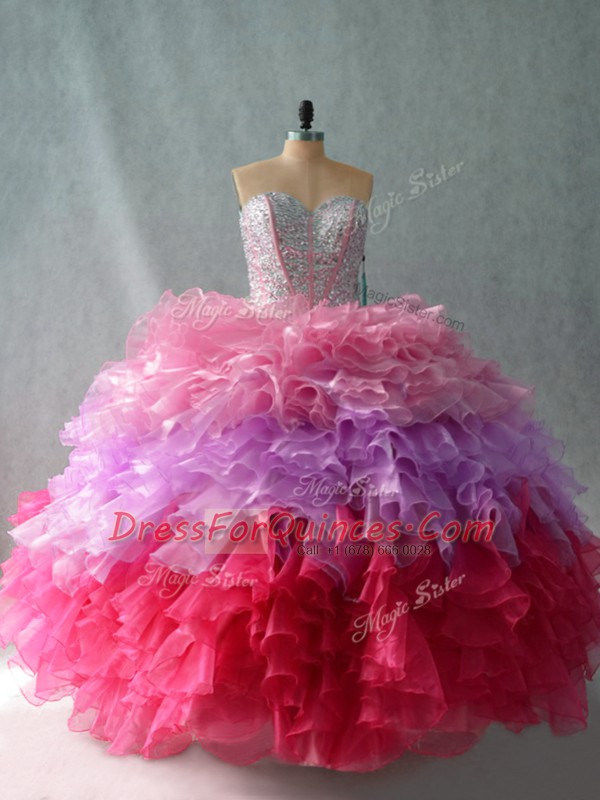 Floor Length Multi-color Quinceanera Gowns Organza Sleeveless Beading and Ruffles