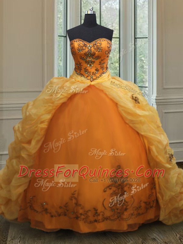 Glittering Sleeveless Court Train Beading and Appliques and Pick Ups Lace Up Quinceanera Gown