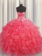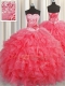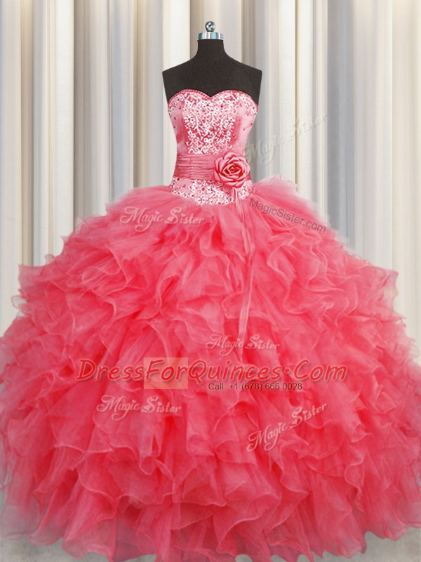 Handcrafted Flower Coral Red Sweetheart Lace Up Ruffles and Hand Made Flower Quinceanera Dress Sleeveless