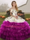 Modern Sleeveless Organza Floor Length Lace Up Quinceanera Dress in Fuchsia with Embroidery and Ruffled Layers
