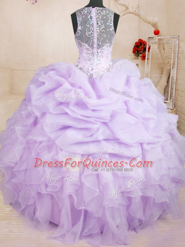 Pick Ups Lavender Sleeveless Organza Lace Up Quinceanera Gowns for Military Ball and Sweet 16 and Quinceanera