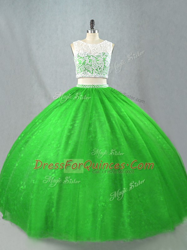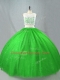 Pretty Floor Length Zipper 15 Quinceanera Dress Green for Sweet 16 and Quinceanera with Beading